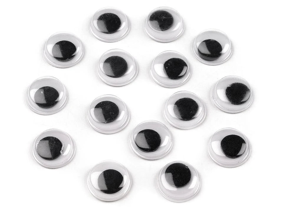 Jautras un radošas kustīgās acis ar pašlīmējošu pamatni, kas piešķir dzīvīgumu jebkuram rokdarbu projektam. Pateicoties kustīgajai melnajai zīlītei, izstrādājumi iegūst rotaļīgu un izteiksmīgu izskatu.