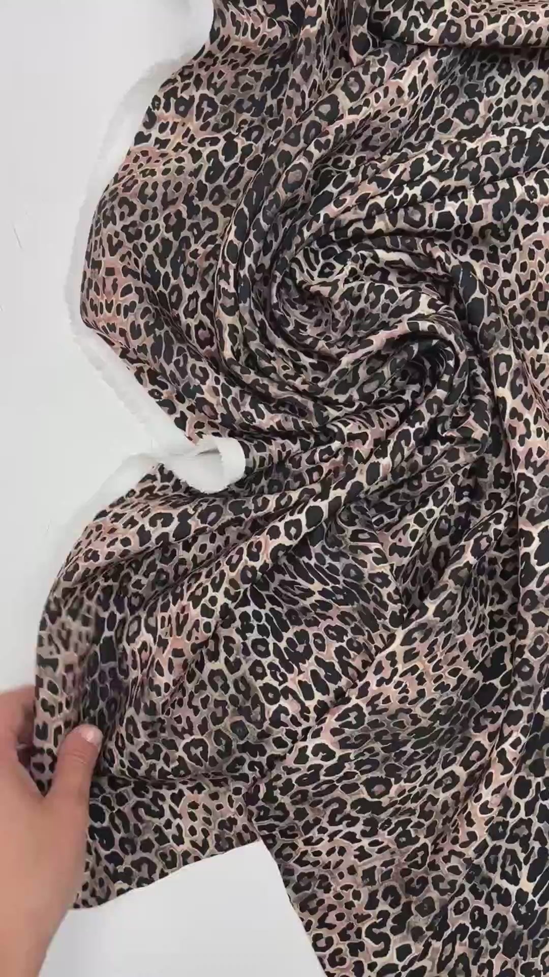 Moderns un ērts Itālijā ražots trikotāžas audums ar leopardrakstu — lieliska izvēle ikdienas apģērbiem ar stila piesitienu. Audums ir izgatavots no 98 % poliestera un 2 % elastāna, nodrošinot elastību gan garumā, gan platumā, kā arī patīkamu sajūtu uz ādas.