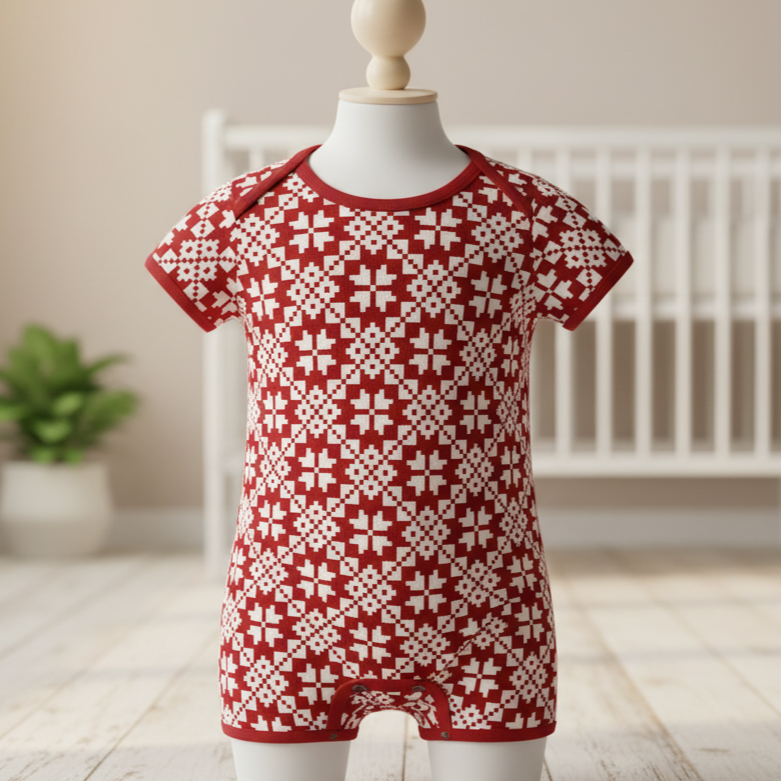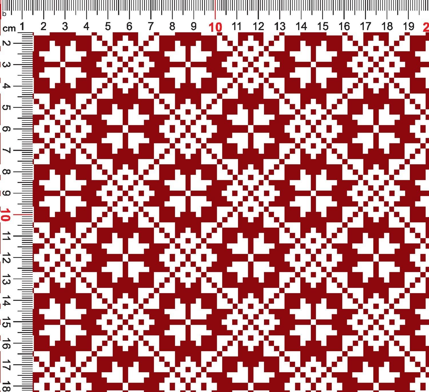 Kokvilnas cilpiņtrikotāža-auseklīšu raksts uz balta fona 250 g/m²