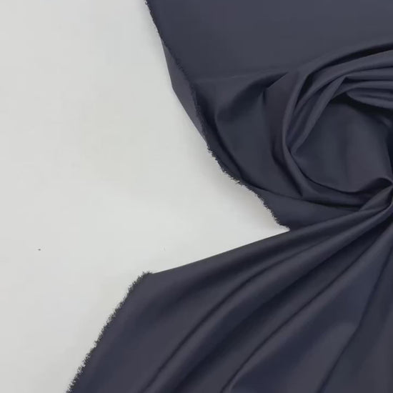 Lightweight and elegant wool twill fabric made in Italy with a deep violet-black tone. The fabric is pleasant to the skin, with slight crosswise stretch, providing comfort and a beautiful drape. Suitable for dresses, blouses and lightweight, quality garments.